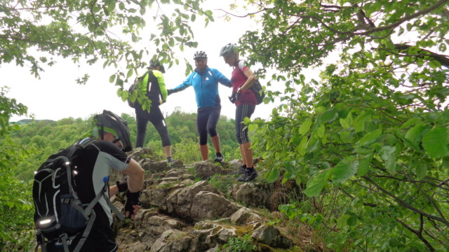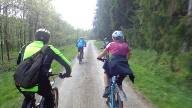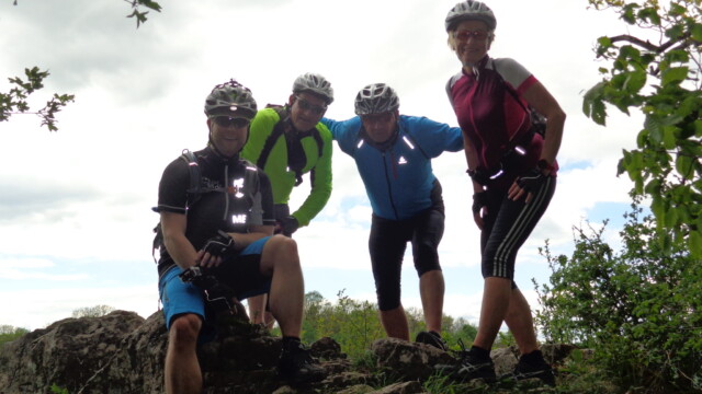 Eine kleine Truppe Mountainbiker macht sich auf den Weg …