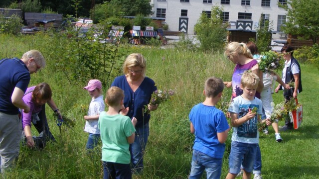 Am vergangenen Mittwoch machten sich Kinder und Eltern bei Sonnenschein gemeinsam auf den Weg, um in Fabriknähe Kräuter zu sammeln. Erstaunt waren die Teilnehmer über die Vielfalt der hier wachsenden Kräuter, so fand man auf der Wiese z.B. Oregano, Johanniskraut, Rainfarn, Mädesüß und Wiesenschafgarbe.