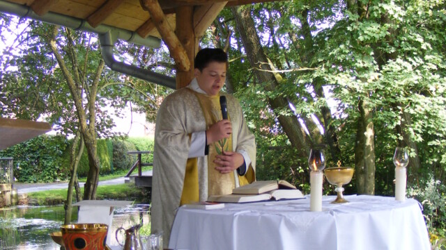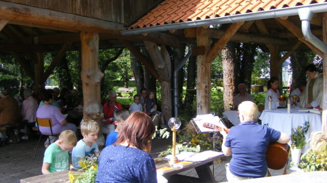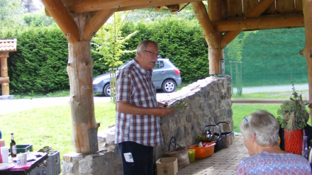 Im Anschluss an die Wanderung wurden die Kräuter am Entenstall von Vikar Lübker gesegnet. Mit dabei waren einige Senioren, um gemeinsam mit den Familien Gottesdienst zu feiern und anschließend Kaffee zu trinken. Die bereits im Vorfeld gesammelten und gebundenen Sträußchen mit 24 „Almer-Kräutern“ wurden von den Kindern an die Senioren übergeben. Klaus Hanzen informierte über die heilende Wirkung der einzelnen Kräuter. Hierfür und für das Sammeln dieser ein herzliches Dankeschön.