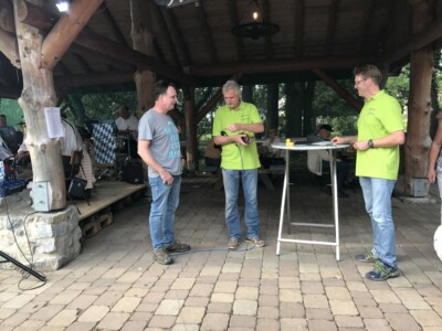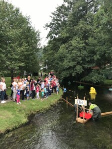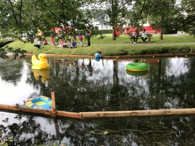 Dass dieses Wochenende am Entenstall wieder einmal etwas los sein würde, konnte jeder, der an der Unteren Bahnhofstraße vorbeikam, schon ahnen. Bereits am Dienstag begannen die Vorbereitungen des Verkehrsvereins für das traditionelle Wasserradfest am Entenstall. Weitere Arbeitseinsätze am Donnerstag, Freitag und Samstag folgten, bevor der Obergraben der Alme einer Rennstrecke glich und Bierwagen, Zelt und Beleuchtung aufgebaut waren. Nur die Gäste und gutes Wetter fehlten noch. Und beide Wünsche gingen in Erfüllung: Bereits am frühen Vormittag hatten sich die ersten großen und kleinen Gäste eingefunden um noch auf eine Rennente zu setzen oder eine gekaufte Kinderente startfertig abzugeben. Schon die beiden Vorläufe, bei denen jeweils 300 Enten in ihr eigentliches Element gegeben wurden, weckten Spannung und Vorfreude, die mit Bratwürstchen, Reibekuchen und Gutes vom Backblech sowie gekühlten Getränken auf hohem Niveau gehalten wurde. Ein erstes Highlight war der Sonderlauf der Kinderenten, bei dem Jakob Steiner die Nase ganz vorn hatte und sich zusammen mit seinem Papa, dem Betreiber der Almer Schlossmühle, über seinen Gewinn, eine Familienkarte fürs Badcelona, freuen durfte. 88 Kinderenten bevölkerten vorher die Alme und lieferten sich ein spannendes Rennen. Vielen Dank an Brunhilde Gräff und Corinna Schulte, die in den letzten zwei Wochen diese Enten im Freibad und Kindergarten unters kleine Volk brachten. Im hoch dotierten Endlauf ging es dann um Geldpreise mit einer Gesamtsumme von 660 €. Hier kam Leo Henke auf den ersten Platz, dahinter folgten zwei Enten von Willi Lohne. Über weitere Preise und Urkunden konnten sich Daniela und Frank Patzke, Bernd Kaiser, Maximilian Müller, Hans Mosbach, Maya Hülsbusch und Christa Lahme freuen.