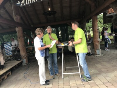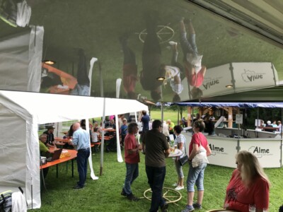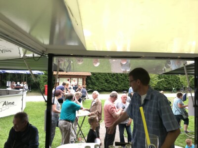 Dass die Stimmung so gut war und auch die Kinder auf ihre Kosten kamen, lag aber nicht nur am guten Wetter und den toll aufspielenden Almetal Buam von der Harth: Die Alme AG, die die Bewirtung am Bierwagen übernahm, und der Familientreff, der sich mit Schminken und Entenangeln um die Unterhaltung der Kinder kümmerte, waren zusammen mit den vielen tatkräftigen Frauen und Männern des Verkehrsvereins der Garant für das Gelingen dieses Festes. Herzlichen Dank an alle, die mitgeholfen und mitgefeiert haben!!!