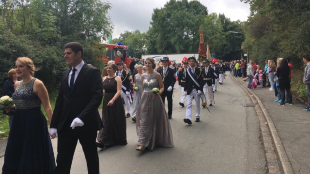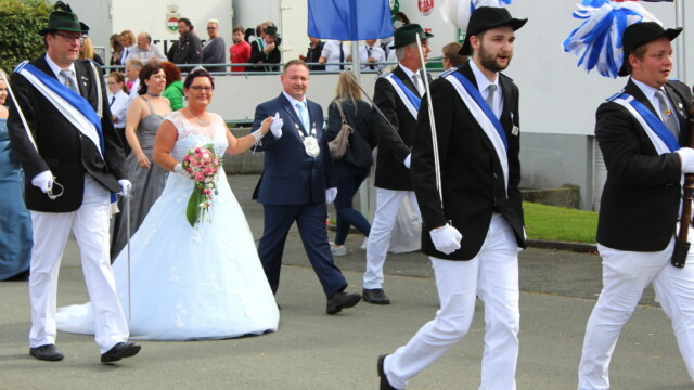 Das vergangene Wochenende war für viele Schützenvorstände, Schützenbrüder, deren Partnerinnen sowie Freunde des Schützenwesens zum Abschluss der Schützenfestsaison nochmal Anlass zum Feiern. Die Stadt Medebach hatte zum Kreisschützenfest eingeladen. Während am Freitag und Samstag Kreisschützenkönig ( Stefan Wahle mit seiner Königin Alexandra Will, St. Liborius Assinghausen) und Kreisjungschützenkönig (Paul Hanfland, St. Sebastian Bigge) ausgeschossen wurden, stand der Sonntag ganz im Zeichen des großen Festumzugs der vielen eingeladenen Vereine mit ihren Königspaaren nebst Hofstaat und anschließendem gemütlichen Beisammensein in Schützenhalle und Festzelt. Mitglieder beide Almer Vereine waren zusammen mit ihren Königspaaren und Hofstaat vor Ort.