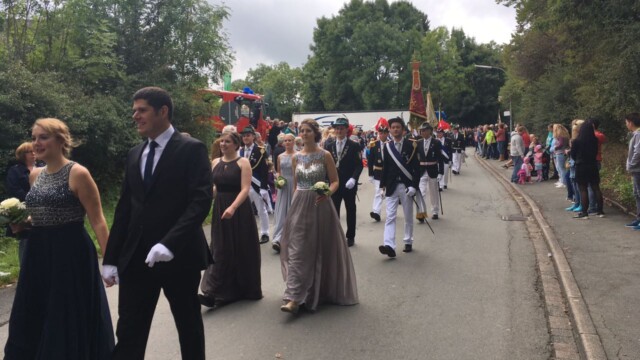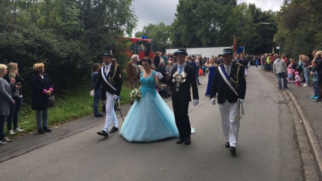Das vergangene Wochenende war für viele Schützenvorstände, Schützenbrüder, deren Partnerinnen sowie Freunde des Schützenwesens zum Abschluss der Schützenfestsaison nochmal Anlass zum Feiern. Die Stadt Medebach hatte zum Kreisschützenfest eingeladen. Während am Freitag und Samstag Kreisschützenkönig ( Stefan Wahle mit seiner Königin Alexandra Will, St. Liborius Assinghausen) und Kreisjungschützenkönig (Paul Hanfland, St. Sebastian Bigge) ausgeschossen wurden, stand der Sonntag ganz im Zeichen des großen Festumzugs der vielen eingeladenen Vereine mit ihren Königspaaren nebst Hofstaat und anschließendem gemütlichen Beisammensein in Schützenhalle und Festzelt. Mitglieder beide Almer Vereine waren zusammen mit ihren Königspaaren und Hofstaat vor Ort.