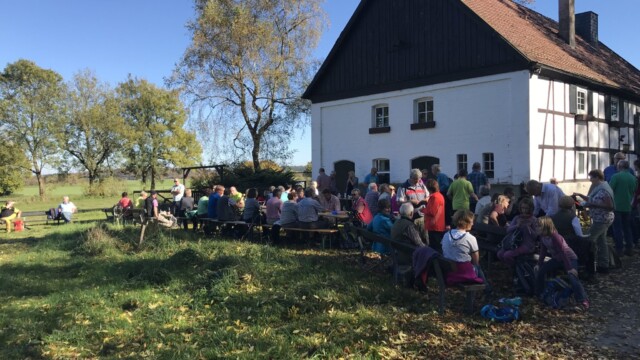 Auf dem Qualitätswanderweg „Quellenweg“ geht es weiter durch das idyllische Mühlental und dann auf schmalem Weg steil bergauf Richtung Uhufelsen und dann weiter durch das Saurierdorf Nehden und das Immental zum Gut Almerfeld. Von hier geht es weiter zum Loh in der Nähe von Bleiwäsche. Am alten Forsthaus Loh wird eine längere Pause (Rucksackverpflegung) eingelegt. Kaffee und kalte Getränke werden vor Ort angeboten.