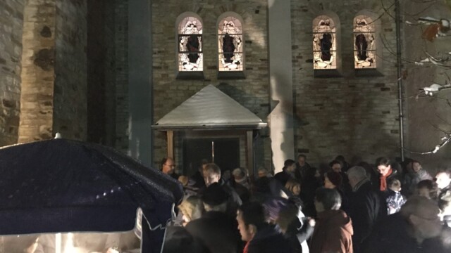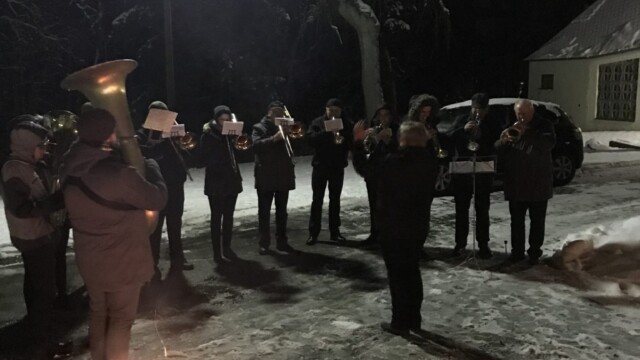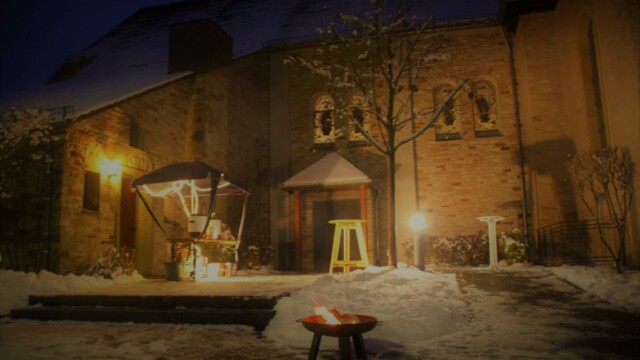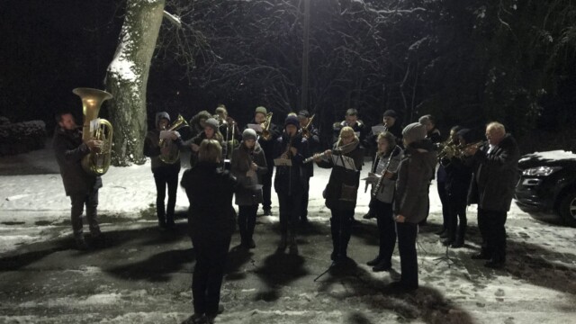 Nach dem Konzert gab es im Innenhof der Kirche Glühwein und heißen Apfelsaft und einige Musikanten der Original Almetaler spielten dazu im Schein eines kleinen Feuers noch einige Weihnachtslieder.