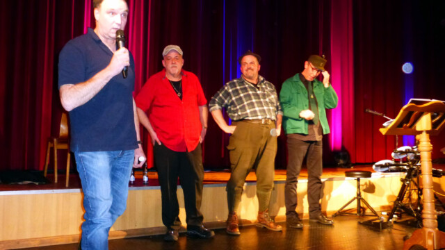 Als Heuers Seiner, Teuerkes Friedel und Josef Sauerland die mit 350 Gästen und der längsten Thekenmannschaft der Region gefüllte Gemeindehalle betraten, war eigentlich schon alles gesagt! Gestik und Mimik reichten schon aus, um die Menge bereits vor Beginn des Programms zum Lachen zu bringen. Auf der Bühne wurde dann der Sauerländer mit seinen liebenswerten Eigenarten in Liedern und Gesprächen be- und durchleuchtet. Das Publikum war stets aufgefordert, sich durch Klatsch-, Schunkel- und Gesangseinlagen mit einzubringen. Zweimal wurden auch vorher ausgewählte Besucher auf die Bühne gebeten, um ordentlich mitzumischen.