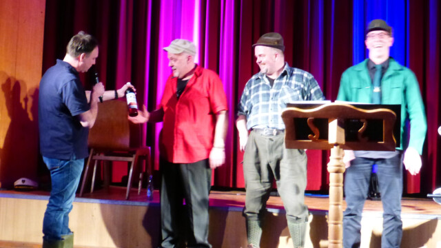 Als Heuers Seiner, Teuerkes Friedel und Josef Sauerland die mit 350 Gästen und der längsten Thekenmannschaft der Region gefüllte Gemeindehalle betraten, war eigentlich schon alles gesagt! Gestik und Mimik reichten schon aus, um die Menge bereits vor Beginn des Programms zum Lachen zu bringen. Auf der Bühne wurde dann der Sauerländer mit seinen liebenswerten Eigenarten in Liedern und Gesprächen be- und durchleuchtet. Das Publikum war stets aufgefordert, sich durch Klatsch-, Schunkel- und Gesangseinlagen mit einzubringen. Zweimal wurden auch vorher ausgewählte Besucher auf die Bühne gebeten, um ordentlich mitzumischen.
