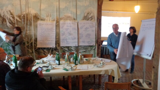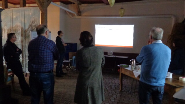 Während der Samstag ganz im Zeichen der Planung stand, war der Sonntagvormittag angedacht, um das Projekt vorzustellen. Mit einer Power-Point-Präsentation wurden die geladenen Gäste R. Huxoll (1. Beigeordneter der Stadt Brilon), R. Strenger (Brilon Wirtschaft und Touristik), L. Böddecker und W. Harding (Ratsmitglieder), F. Patzke (Ortsvorsteher) und P. Kraft (Forst Alme) über das Projekt, bereits erfolgte Arbeitsschritte und weitere Aufgaben informiert.
