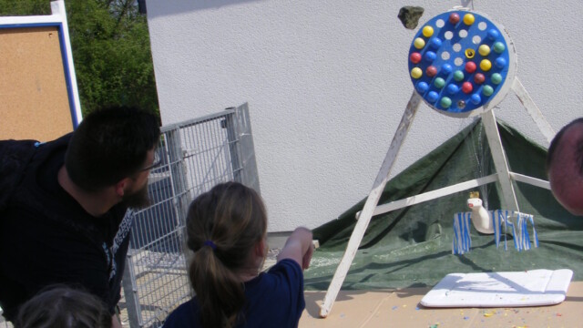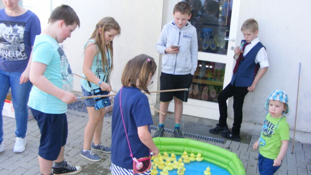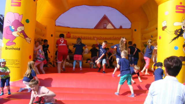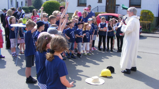 Im Verlauf des Tages konnten die Kinder sich auf der Hüpfburg austoben, beim Spieleparcours der KLJB wetteifern und bei dem Bastelangebot der OGS kreativ sein.