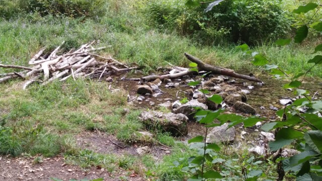 Es schaut dürftig aus im Quellgebiet der Alme. Das Flussbett der Alme in Wewelsburg ist allerdings schon seit längerer Zeit „richtig“ leer …