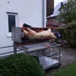 Als besondere Überraschung gab es ein Spanferkel vom offenen Grill, was allerdings das Ferkelgewicht um einiges überschritten hatte, so dass alle mehr als satt wurden.