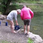 Der Spaziergang diente auch als Aufwärmprogramm um, wieder am Quellteich angelangt, Beingüsse nach Pfarrer Kneipp auszuprobieren. Es gab einige Freiwillige, die sich trotz der kühleren Temperaturen die Hosenbeine hochkrempelten, um einen Guss mit Almewasser zu erleben. Einige „Ahs“ und „Ohs“ hallten dabei leise durch das Mühlental.