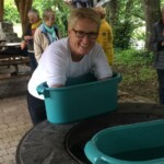 Wieder am Entenstall angekommen, konnten die Teilnehmer ihre Arme in sogenannte Armwannen eintauchen, um die Wasseranwendung an den oberen Extremitäten zu erfahren.