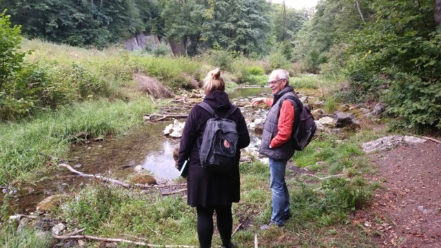 Obergraben, Quelltopf, Viadukt, Bäume, Tiere, Farben, Gerüche, Geräusche, Waldsofa, Wind, Quellgebiet mit aufsteigenden Einzelquellen, Flusslauf, Wasser, Sonne und Stille waren einige der Wegbegleiter und Thema im Gespräch.