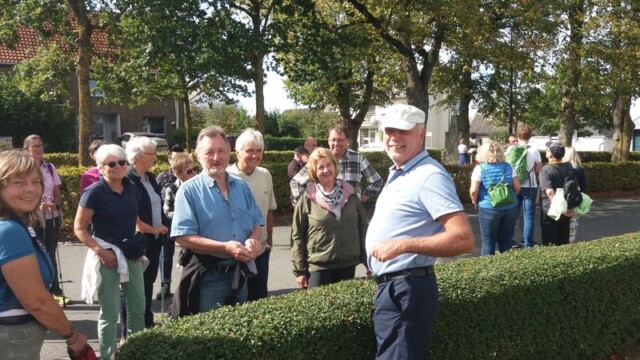 Am Almer Wasserschloss der Grafen von Spee vorbei, war der erste Stopp am sogenannten „Steinhäufchen“, wo Doris Seifert den geschichtlichen Hintergrund zu dem dort aufgestellten „Straßen-Heiland“ läuterte.