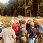 Anhand verschiedener Flächenbeispiele wurde deutlich, das nicht nur bewusst neu bepflanzt wurde, sondern auch auf Naturverjüngung gesetzt wird. Neben der Bepflanzung mit Douglasien, Fichten, Stieleichen und anderen Pflanzen, die gut mit Wärme zurecht kommen, soll der Wald auf geeigneten Flächen selber „arbeiten“ und aus benachbarten Bäumen hier neue Pflanzen bilden.