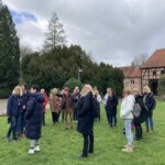 Nun aber los! Gemütlich schnaufte Eddi uns durch die Altstadt von Haltern, vorbei am Römermuseum mit nachgebauter Wallanlage, durch Straßen und Gässchen bis hin zur Schloßanlage Sythen. Hier erwartete uns eine anschauliche Führung mit Sektempfang und Häppchen. Der gereichte Mühlentropfen, ein Kräuterlikör aus der Region, war köstlich und sehr zu empfehlen. Obwohl nicht mehr viel von dieser Anlage übrig war, erhielten wir Einblicke in das frühere Leben, besichtigten die zugehörige Kapelle mit einem beeindruckenden Backsteingewölbe und schlenderten durch den Schlossgarten.