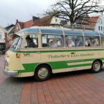 Am Bahnhof in Geseke begann diese Reise, recht früh am Tag, aber alle richtig gut gelaunt und voller Vorfreude. Mit einem Frühstücksbuffet und leckeren Getränken im Gepäck saßen wir schnell im Zugabteil Richtung Haltern am See. Busfahrer Roland wartete mit dem 65 Jahre alten Oldtimerbus Eddi bereits auf uns, als wir dort ankamen. Und ich kann euch sagen, verliebt waren wir auf Anhieb. Nicht in Roland, sondern in den charmanten Eddi. Er stand ja einfach nur dort, aber schnell hatte er uns mit seiner Erscheinung in seinen Bann gezogen. Unsere eigene Land und Lecker-Tour konnte beginnen.