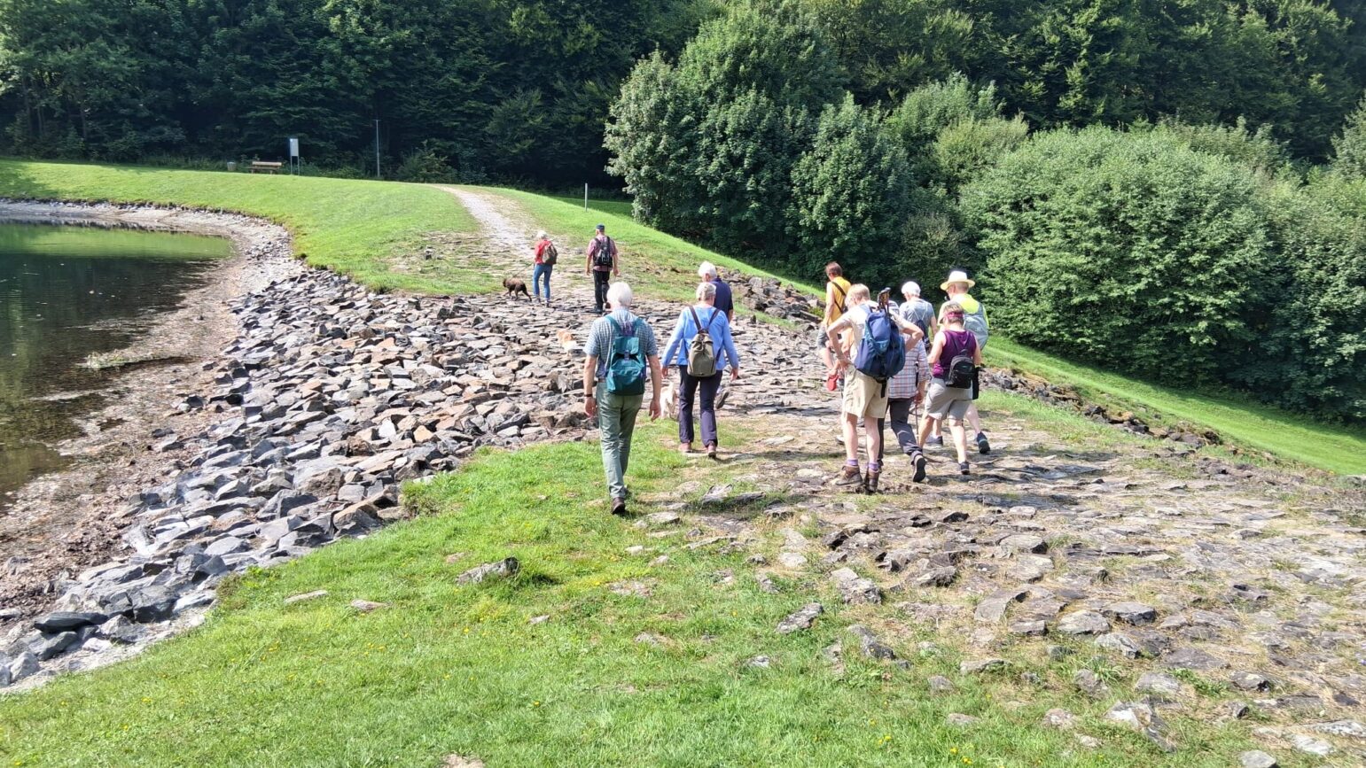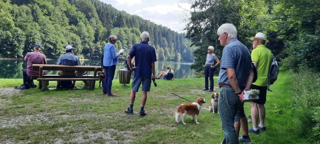 Am Donnerstag, den 14. August 2025 traf sich eine sportliche Truppe von 15 wanderlustigen Abenteurern und drei Hunden auf dem Parkplatz am Kirchweg in Brilon-Wald. Die Sonne lachte – und zwar so sehr, dass das Thermometer über 30 Grad° kletterte. Andere Leute wären ins Freibad gegangen, wir entschieden uns für eine 7,5 km lange Rundwanderung.