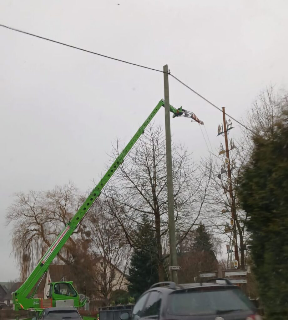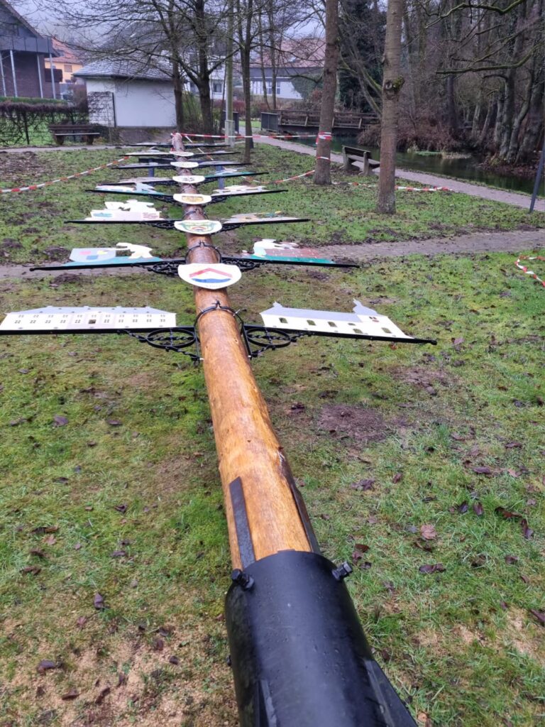 Da die Standfestigkeit des Handwerkerbaums nicht mehr gesichert war, musste dieser kurzfristig abgebaut und durch einen neuen Baum ersetzt werden, hier gilt der Dank der gräflichen Forstverwaltung für die Spende eines neuen Baumes. Durch technische und witterungsbedingte Probleme hat sich die Aufstellung leider verzögert, aber jetzt bietet er wieder das gewohnte Bild.