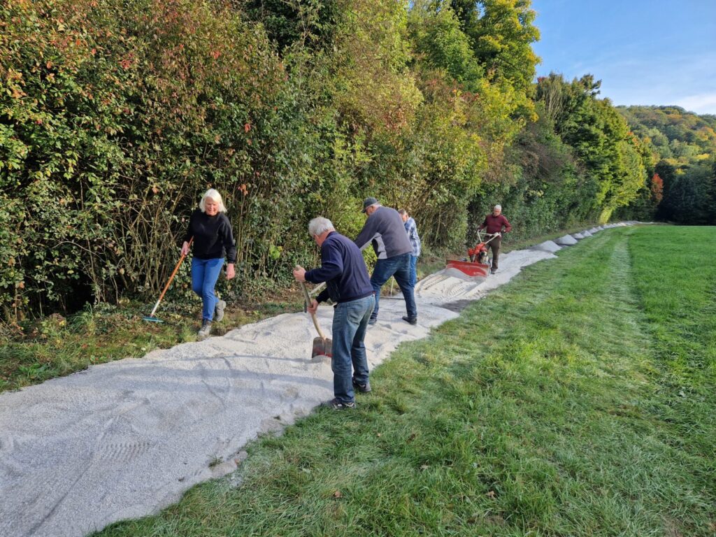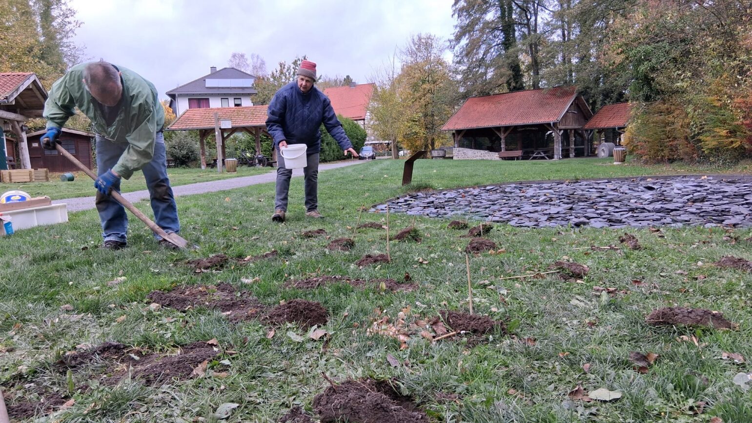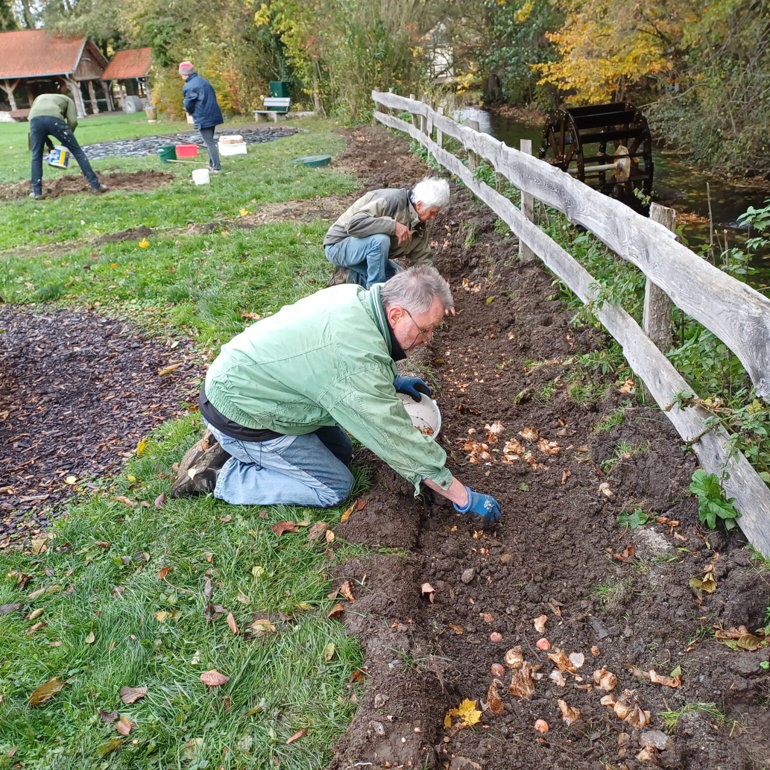 Letzte Aktion des Jahres – zuvor wurde das neue Wasserrad eingesetzt, Blumenzwiebeln für Blühstreifen eingegraben und der Weg vom Entenstall zur ehem. Papierfabrik erneuert