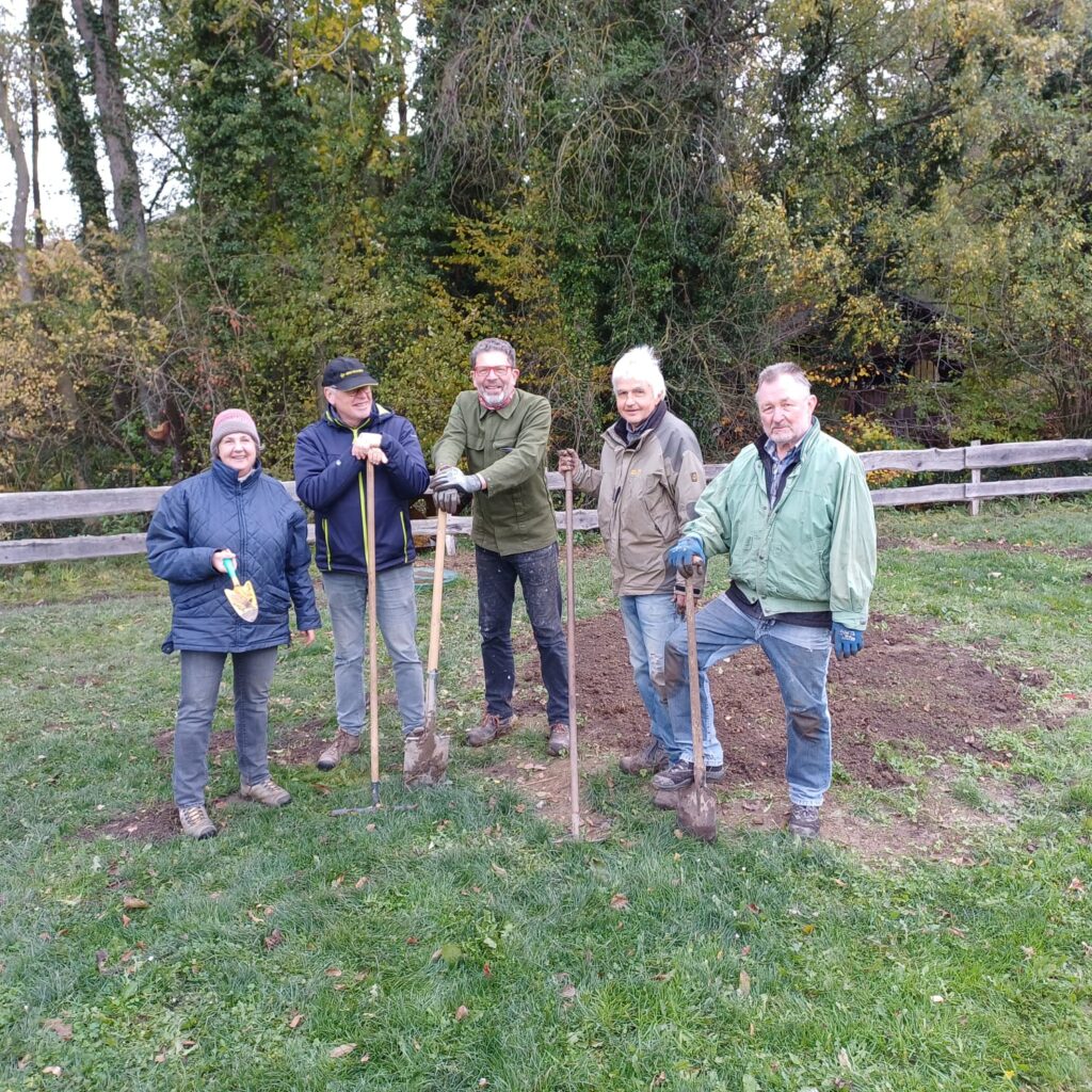 Der Blühstreifen und einige weitere Stellen auf dem Entenstallgelände wurden neu bepflanzt. Die Saaten schlummern noch in der Erde und sollen ab Frühjahr ein farbenfrohes Bild bieten.
