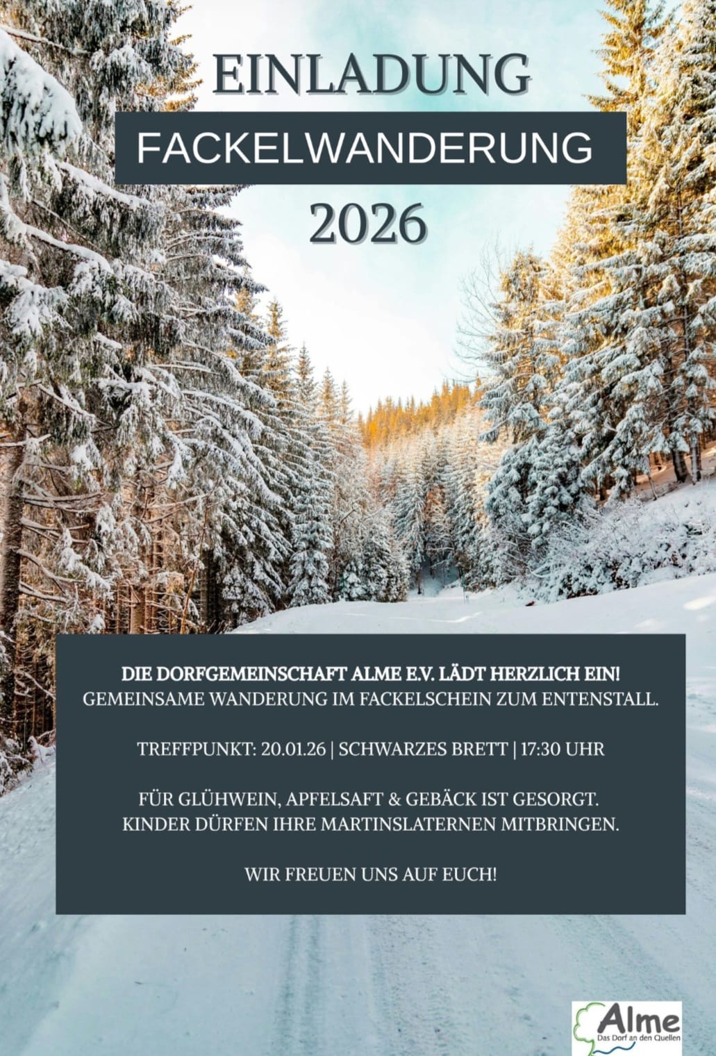 Mit Fackeln eine kleine runde duch’s kalte Alme Spontane Winterwanderung Christian Rohlfing 8. Januar 202618. Januar 2026 Beiträge Keine Kommentare