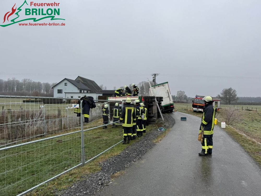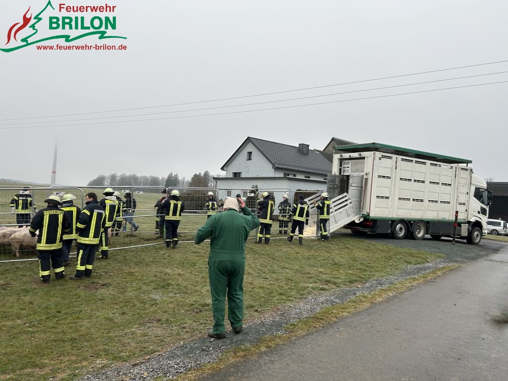 Die Feuerwehr sicherte die Einsatzstelle und streute die Fahrbahn aufgrund von Glatteis mit Salz ab. Zudem wurde das Gespann stabilisiert, um weitere Gefahren zu vermeiden. Der Fahrer blieb unverletzt, stand jedoch unter Schock. Rettungsdienst und Polizei waren vor Ort. Zur Unterstützung wurde die Löschgruppe Alme nachalarmiert. Zusätzlich unterstützte ein Landwirt mit Traktor und mobilen Zäunen.
