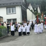 In diesem Jahr ging die Prozession, begleitet vom MV Alme „Die Original Almetaler“, durch den oberen Ortsteil. Dabei waren auch die diesjährigen Kommunionkinder. (Fotos: Klaus Rabeneck)